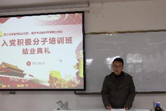 11月23日中午,第二臨床醫學院分黨校與醫學與生命科學學院分黨校聯辦的入黨積極分子培訓班結業典禮在豐盛樓216教室舉行。醫學與生命科學學院黨委楊羽書記、第二臨床醫學院黨委倪光夏書記及部分指導老師出席了結業典禮。