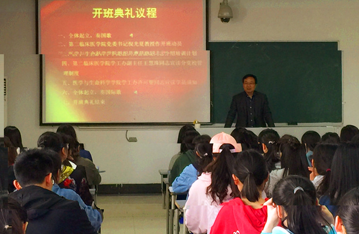 醫學與生命科學學院組織員曹晨曉同志向全體學員介紹了培訓班的培訓計劃及要求;第二臨床醫學院學工辦王慧珠同志宣讀了分黨校管理制度;醫學與生命科學學院學工辦許可塑同志宣讀了學員須知。開學典禮在肅穆的國際歌中落下帷幕。