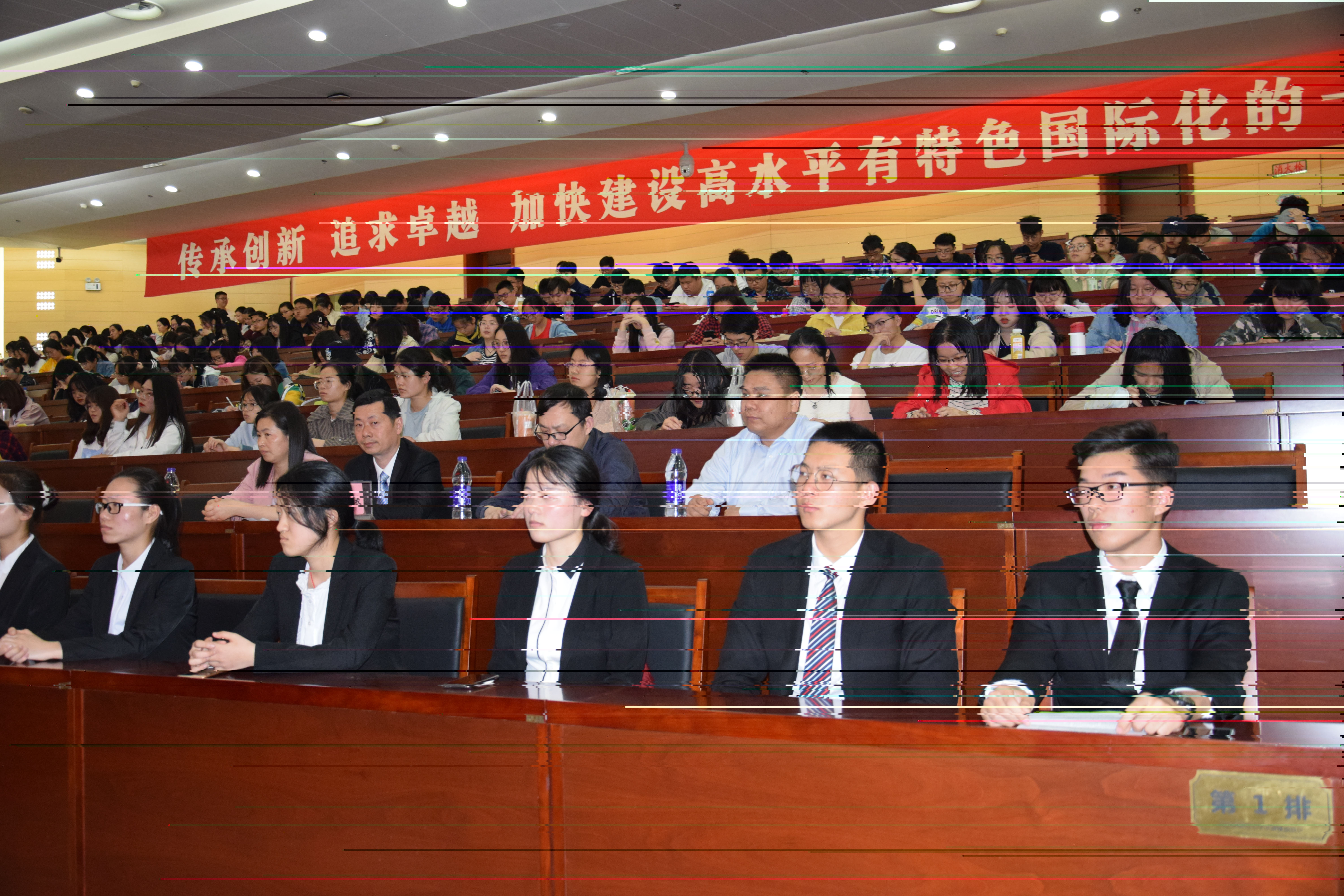 5月8日下午,我校2018年度經禅和獎學金之勤學獎頒獎儀式暨講座在豐盛報告廳隆重舉行。同步集團董事長、經禅和董事長史剛先生、經禅和中醫診所有限公司總經理石曉琴女士、校學生工作處王治世副處長、第二臨床醫學院蔣燕副書記、學工辦李瑾主任、全體輔導員、經禅和中醫診所有限公司員工代表,獲獎學生、家長代表以及2018級全體學生參加了頒獎儀式。頒獎儀式由李瑾老師主持。