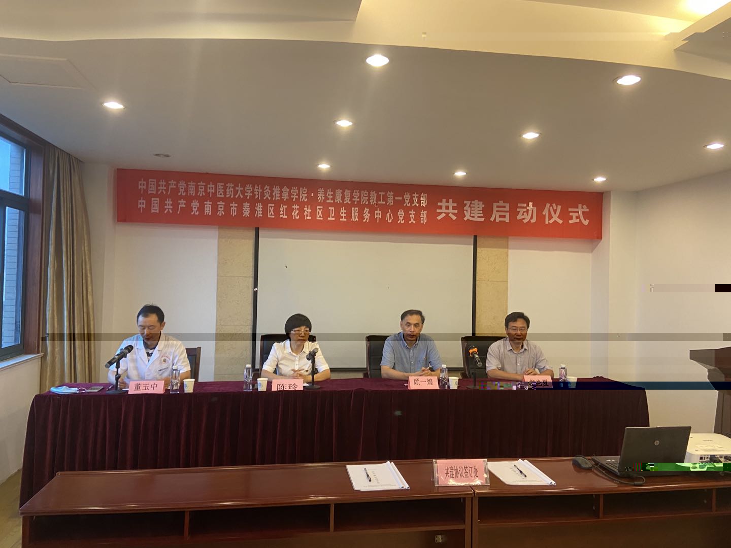 8月8日上午,我院教工第一黨支部與秦淮區紅花社區衛生服務中心黨支部合作共建簽字儀式在紅花社區衛生服務中心正式舉行。學院黨委書記顧一煌,院長倪光夏,針灸系主任董勤,秦淮區衛健委副主任陳玲,紅花社區衛生服務中心黨支部書記董玉中,學院教工第一黨支部書記王欣君及共建雙方全體黨員參加了簽字儀式。