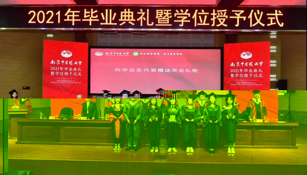 鴻雁群飛,心意傳情。學院領導向優秀畢業生代表贈送學院禮物并合影留念。