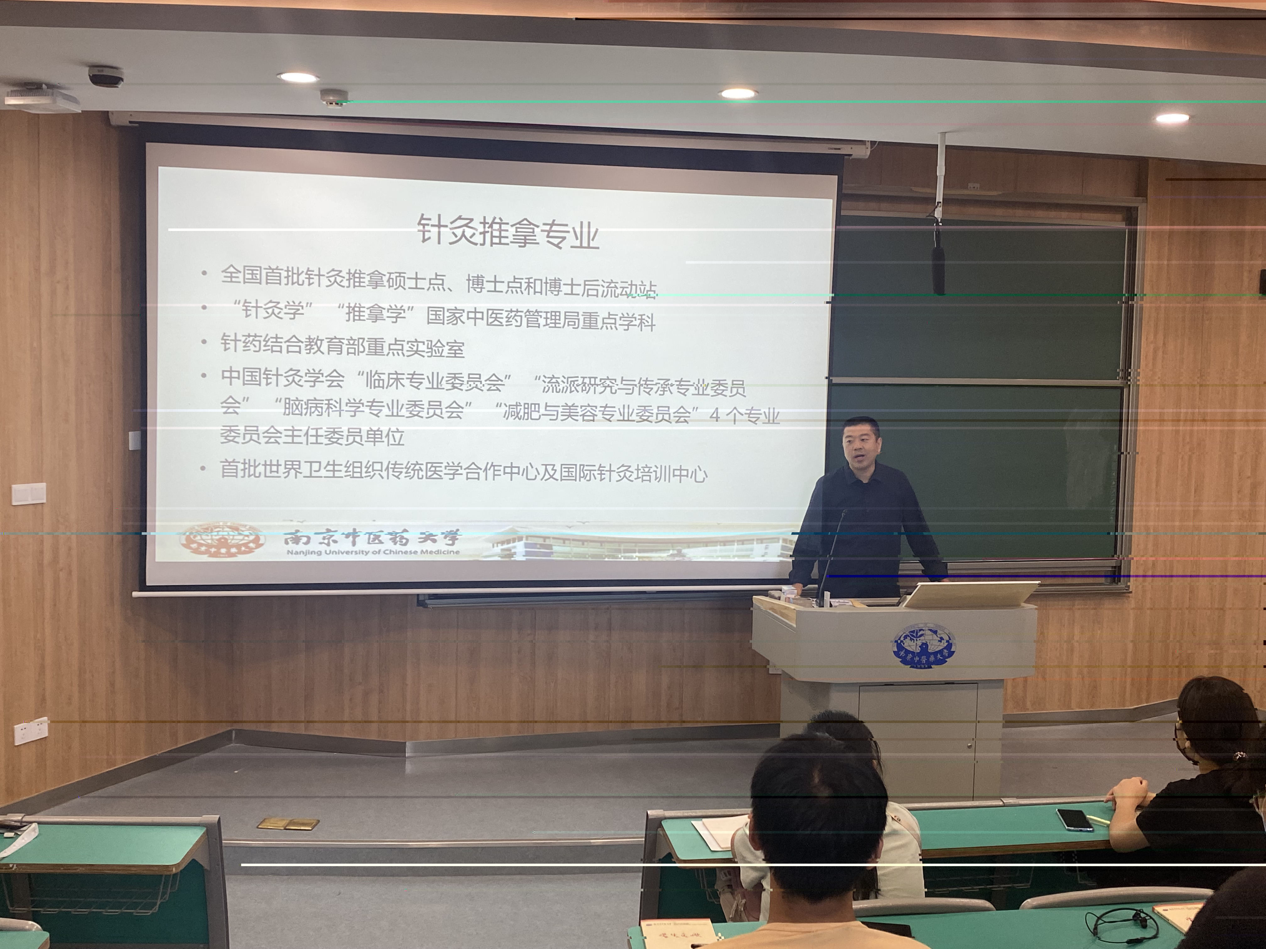 9月23日上午,院長、針灸推拿學國家一流本科專業建設點負責人倪光夏教授以及針灸臨床教研室主任王欣君教授作為主講教師為2021級針推專業的新生們,帶來了一場内容豐富、深入淺出的專業思想教育。
