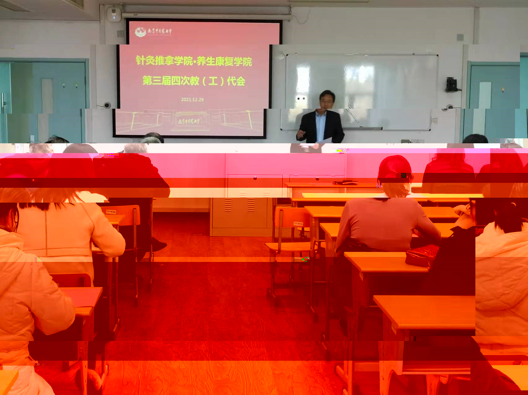 2021年12月29日中午,BETVLCTOR伟德中文网站·養生康複學院第三屆四次教職工暨工會會員代表大會在豐盛樓216會議室順利召開。會議由學院工會主席吳雲川同志主持,應到教師代表46人,實到44人。