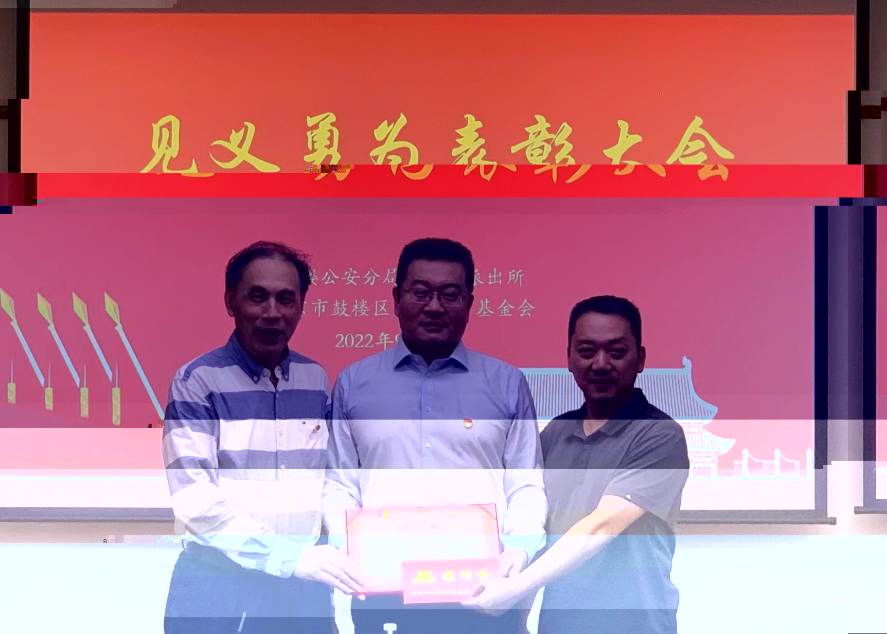 顧一煌對鼓樓區見義勇為基金會為郝鋒老師頒發見義勇為獎表示感謝,并表示郝鋒的事迹在學院也有廣泛宣傳,未來會繼續效弘揚見義勇為精神,帶動身邊更多的人加入到見義勇為事業中來,為平安鼓樓建設做出新的貢獻。