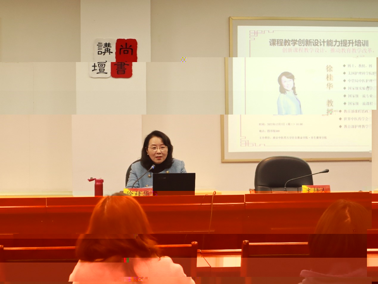 在創新教學設計中,徐教授提出“學習知識在課外、内化知識在課堂、鞏固知識在課後”的觀點。并以《方藥護理學》為例,詳細展示了教學設計應該如何創新。同時,徐教授結合針推學院特色,舉例《經絡腧穴與護理》課程,啟發學院教師從專業角度思考教學創新設計模式。