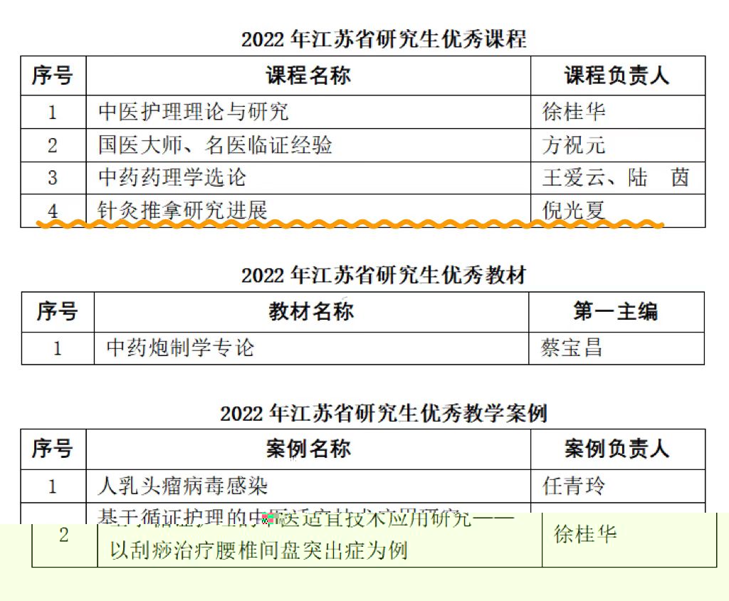 近日,江蘇省教育廳發布《省教育廳關于公布2022年度江蘇省研究生優質教學資源評選結果的通知》(蘇教研函〔2022〕27号),公布了2022年度江蘇省研究生優質教學資源評選結果,我校推薦項目獲評江蘇省研究生優秀課程4門、優秀教材1部、優秀教學案例2個。我院研究生課程《針灸推拿研究進展》獲評江蘇省研究生優秀課程。