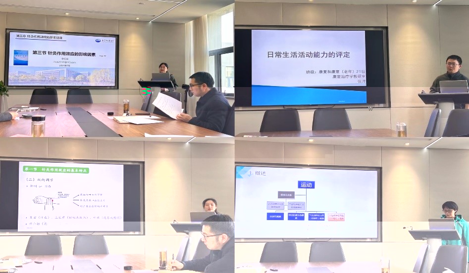 為促進新教師更好更快地進入角色,在教學實踐中鍛煉授課能力,規範新教師授課與開新課工作,學院于2月15日下午2:00在豐盛樓608室,組織開展本年度上半年第一批次新教師(新課)院級試講工作。學院新進教師李紅曉、張洋、曹雪進,以及新開課教師夏良君參加試講。學院張洪兵副院長,實驗針灸學教研室沈梅紅主任,針灸臨床教研室穆豔雲副教授,康複治療學教研室曹震宇副主任參與點評指導。本次試講活動由張洪兵副院長主持。