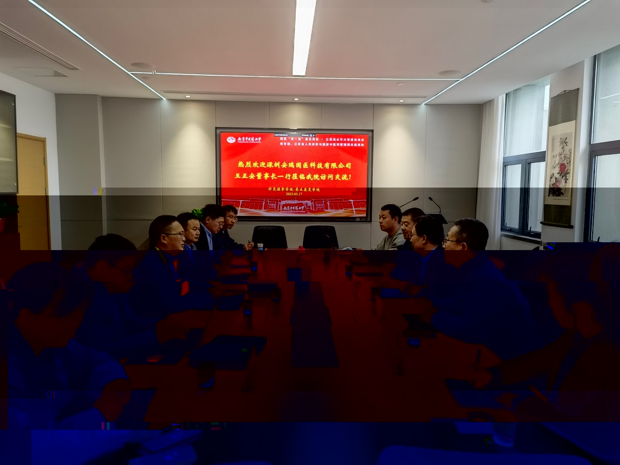 3月17日上午,深圳安瑞國醫科技有限公司董事長王正安、上海齒睿醫療科技公司總經理張三鴻一行6人來我院訪問交流。院長倪光夏主持歡迎和交流會,院黨委書記顧一煌、院長助理吳雲川、徐文韬,中醫學院副院長張宏如,我院針灸臨床教研室主任王欣君、李一陽老師參加會議。