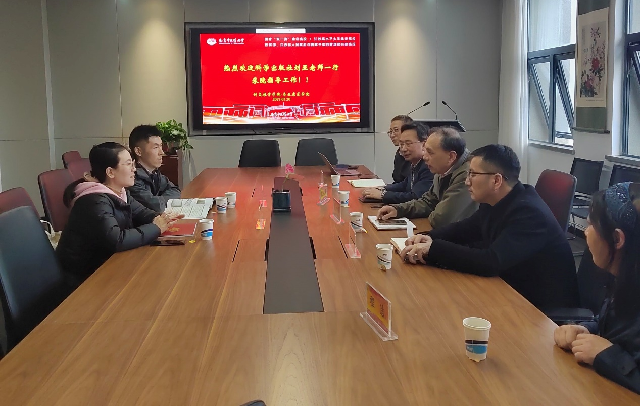 顧一煌書記和倪光夏院長對劉亞老師一行的到來表示熱烈的歡迎,并簡要介紹了我院的曆史沿革、發展概況、辦學特色和教材建設情況。劉亞老師也介紹了科學出版社的基本情況和近期選題出版計劃。