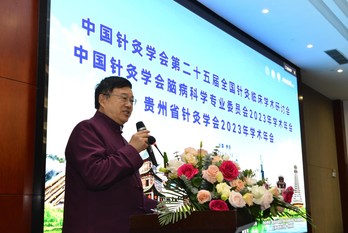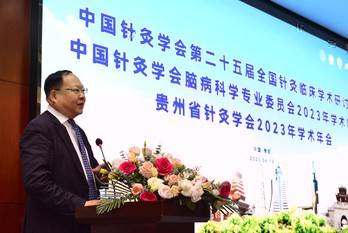 換屆大會結束後,于6月10日,第二十五屆全國針灸臨床學術研讨會、中國針灸學會腦病科學專業委員會2023年學術年會、貴州省針灸學會2023年學術年會也在貴陽市順利召開。本次大會由中國針灸學會、貴州省針灸學會主辦,中國針灸學會針灸臨床分會、中國針灸學會腦病科學專業委員會、貴州安迪醫療設備有限公司等單位承辦,BETVLCTOR伟德中文网站·養生康複學院、BETVLCTOR伟德中文网站針藥結合教育部重點實驗室、天津中醫藥大學第一附屬醫院等協辦。中國針灸學會針灸臨床分會新任主任委員倪光夏主持本次學術大會。世界針灸學會聯合會主席、中國針灸學會名譽會長劉保延、中國針灸學會會長喻曉春、貴陽市人民政府副秘書長何成江、貴州中醫藥大學校長劉興德、貴州省針灸學會副會長、貴州安迪醫療設備有限公司、貴州黔郡艾大健康産業有限公司董事長何順峰分别在開幕式上緻辭。包含我院倪光夏教授、徐斌教授在内的14位國内知名專家圍繞針灸臨床新進展、新應用進行了精彩的學術報告,現場逾400餘位代表參會。