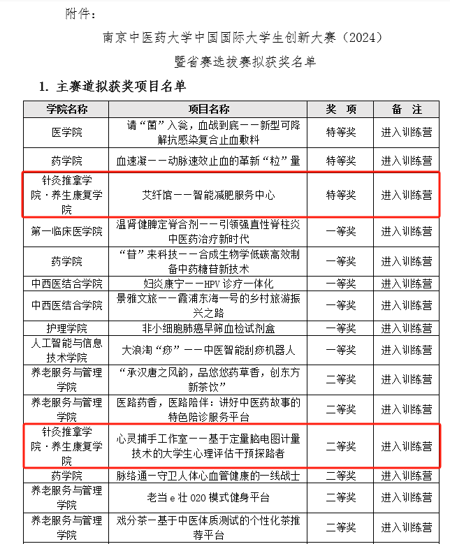 6月6日,根據教務處《BETVLCTOR伟德中文网站中國國際大學生創新大賽(2024)暨省賽選拔賽拟獲獎名單公示》,我院有兩個項目進入學校訓練營。其中徐天成老師指導的項目《艾纖館——智能減肥服務中心》獲主賽道特等獎,曹震宇老師指導的項目《心靈捕手工作室——基于定量腦電圖計量技術的大學生心理評估幹預探路者》獲主賽道二等獎。