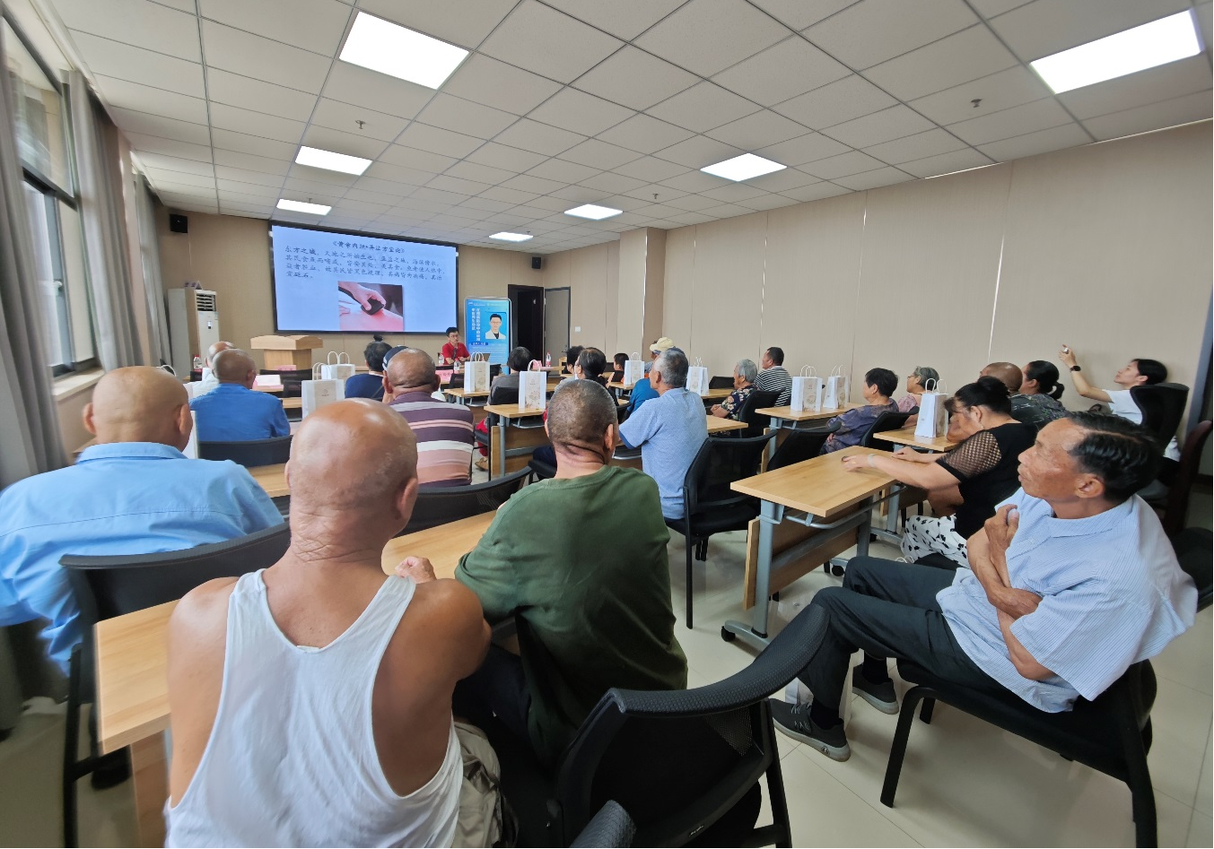 推拿學教研室徐勰老師以“中醫養生功法在慢病防治中的應用”為主題,深入淺出地向患者們講述了不同功法在慢病防治中的作用,并現場展示了相關功法的動作要領。在現場提問和問診環節,徐老師耐心為患者們答疑解惑。