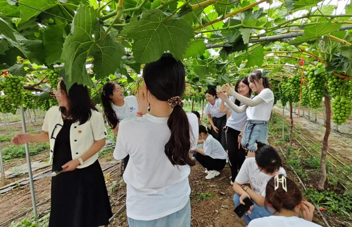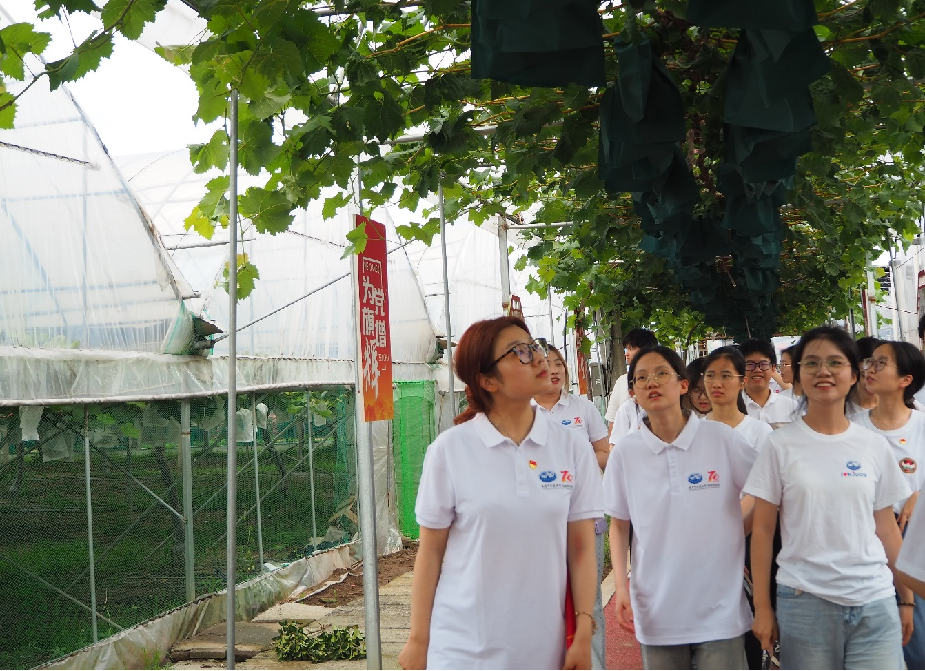實踐團成員重走紅色田園路并參觀蔬菜水果大棚