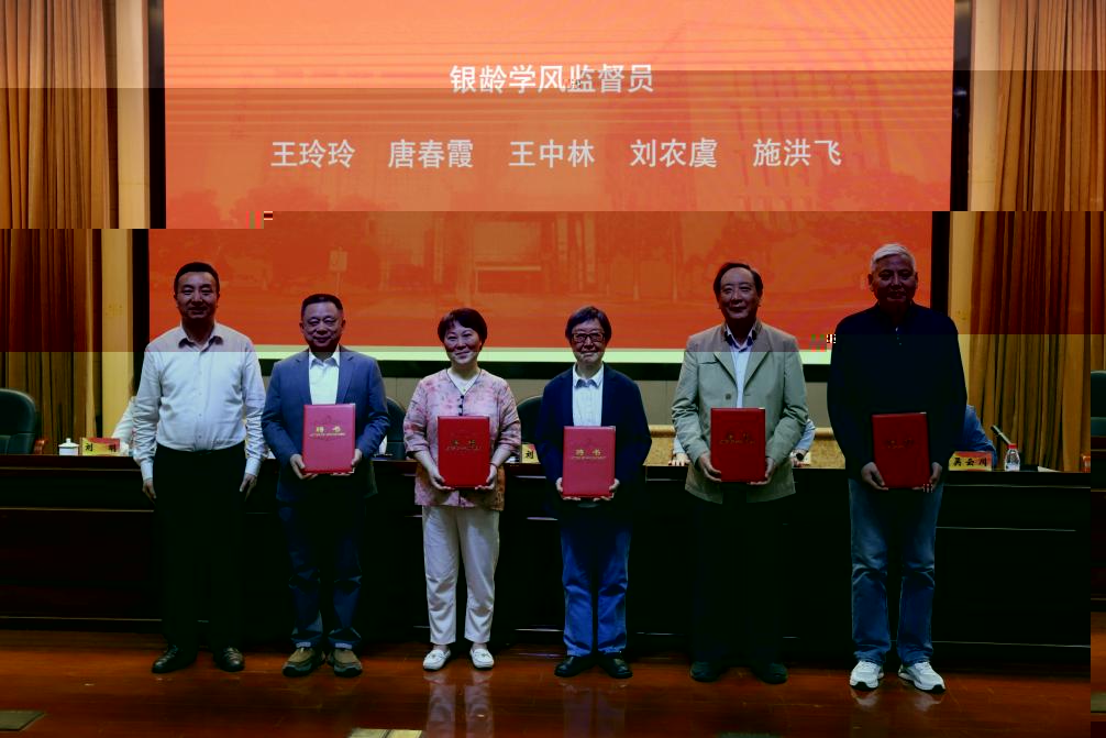 啟動會上,學工處副處長劉雲龍為五位退休教師王玲玲、唐春霞、王中林、劉農虞、施洪飛頒發了銀齡學風監督員聘書。