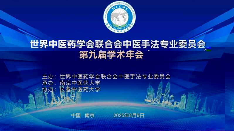 2025年8月9日,世界中醫藥學會聯合會中醫手法專業委員會第九屆學術年會在南京召開。本次大會由BETVLCTOR伟德中文网站·養生康複學院承辦,以守正創新·數智賦能為主題,來自海内外的針灸、推拿、康複相關學科專家齊聚一堂,共同探讨中醫手法的傳承、創新與未來發展。會議開幕式由世界中聯中醫手法專委會秘書長卓越主持。